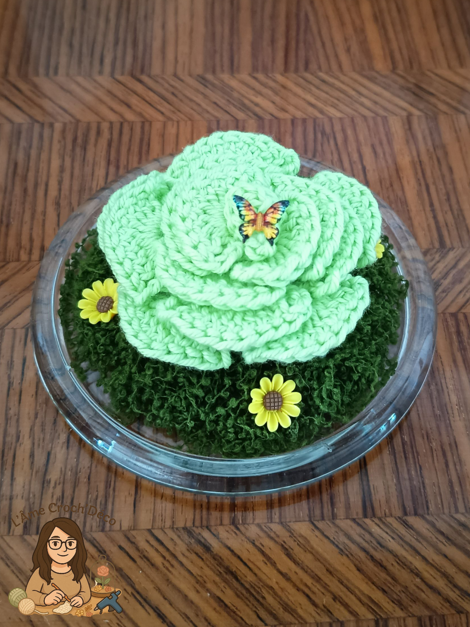 ROSE ÉTERNELLE CROCHETÉE VERTE SOUS CLOCHE