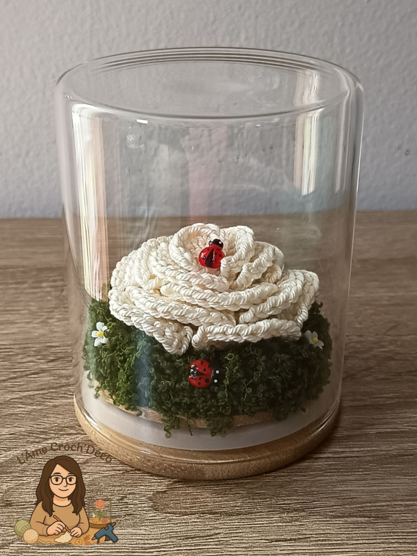 ROSE ÉTERNELLE CROCHETÉE SOUS BOCAL BLANCHE