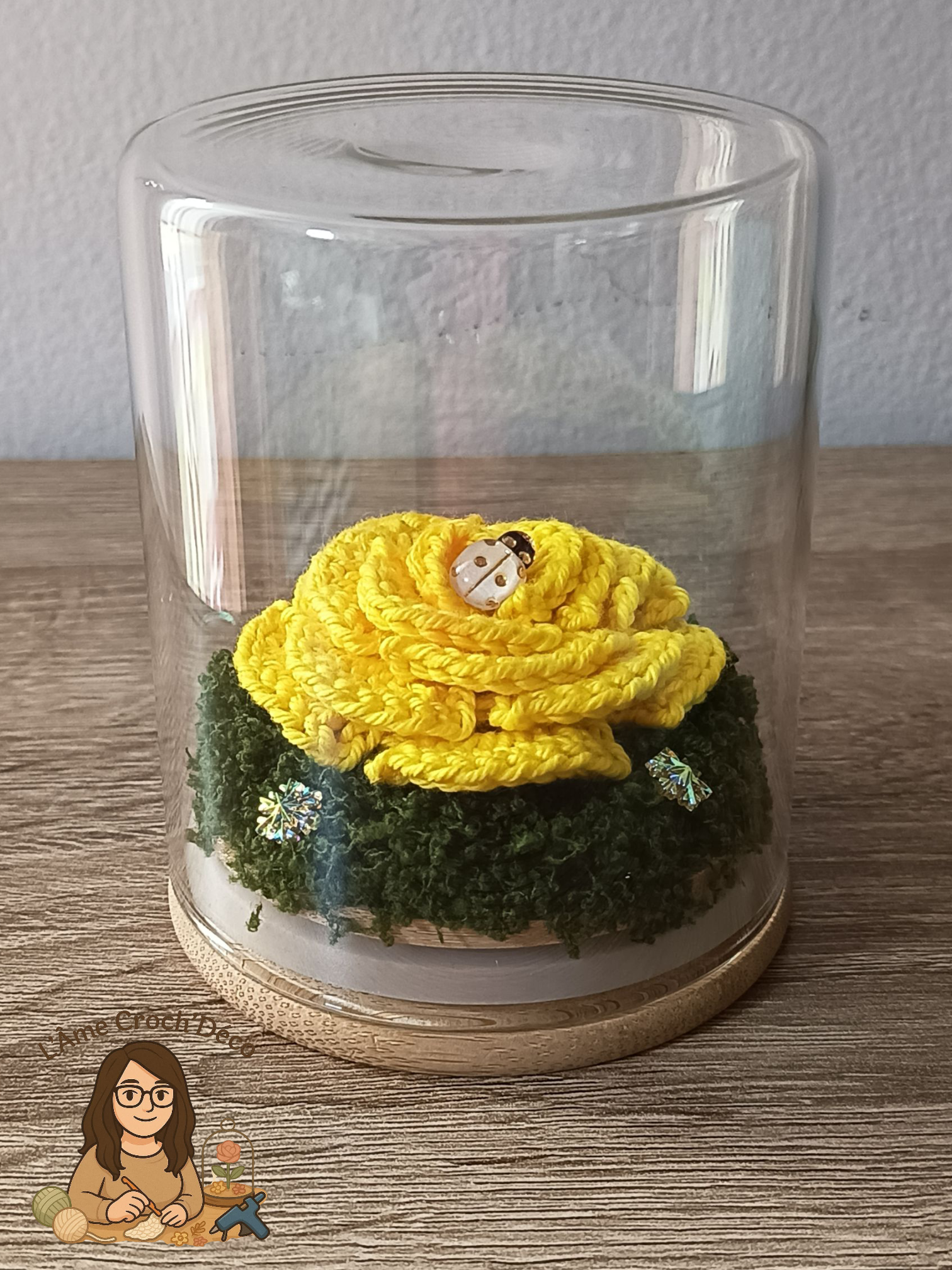 ROSE ÉTERNELLE CROCHETÉE SOUS BOCAL JAUNE