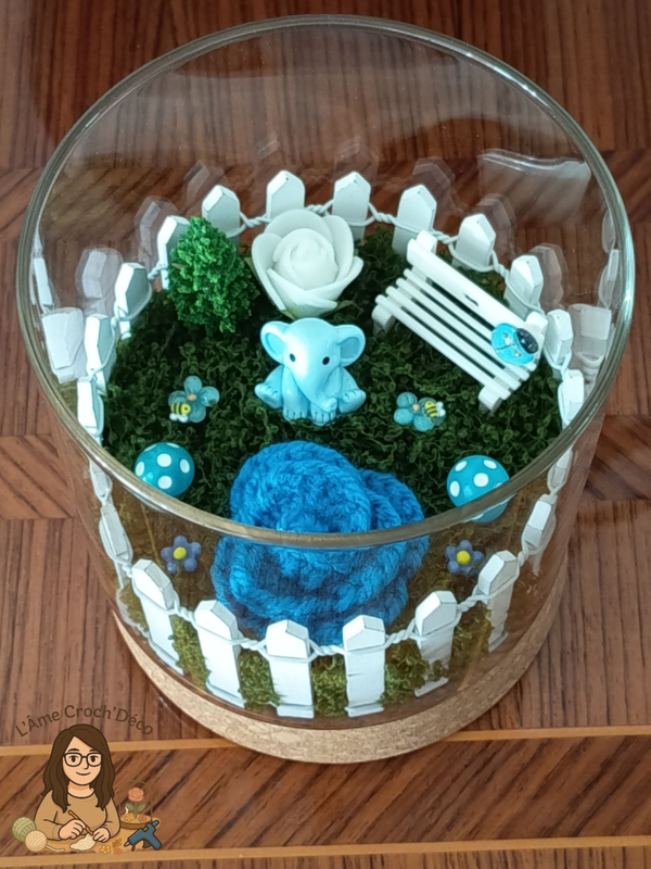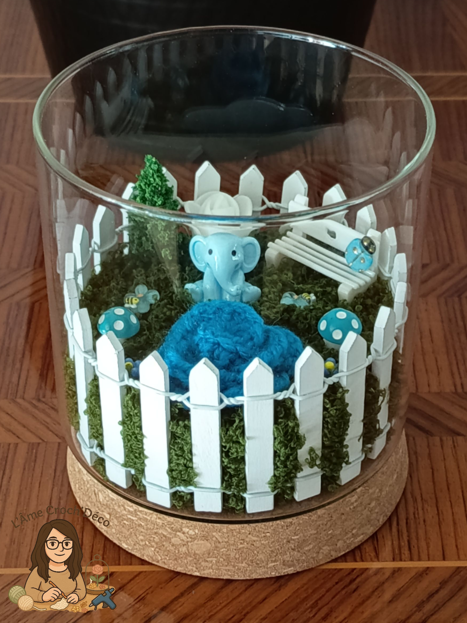 Faites entrer un petit bout de jardin chez vous avec ce magnifique bocal univers jardin dans les tons bleus.