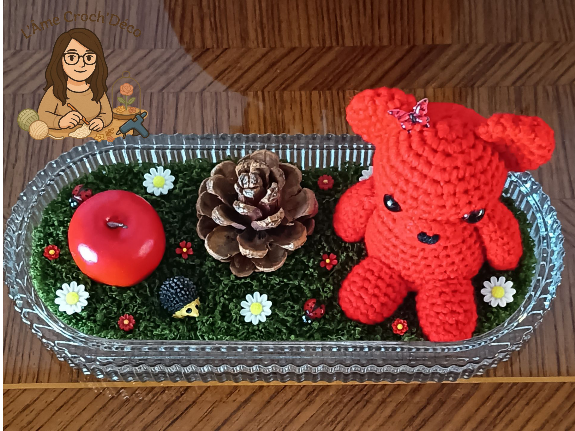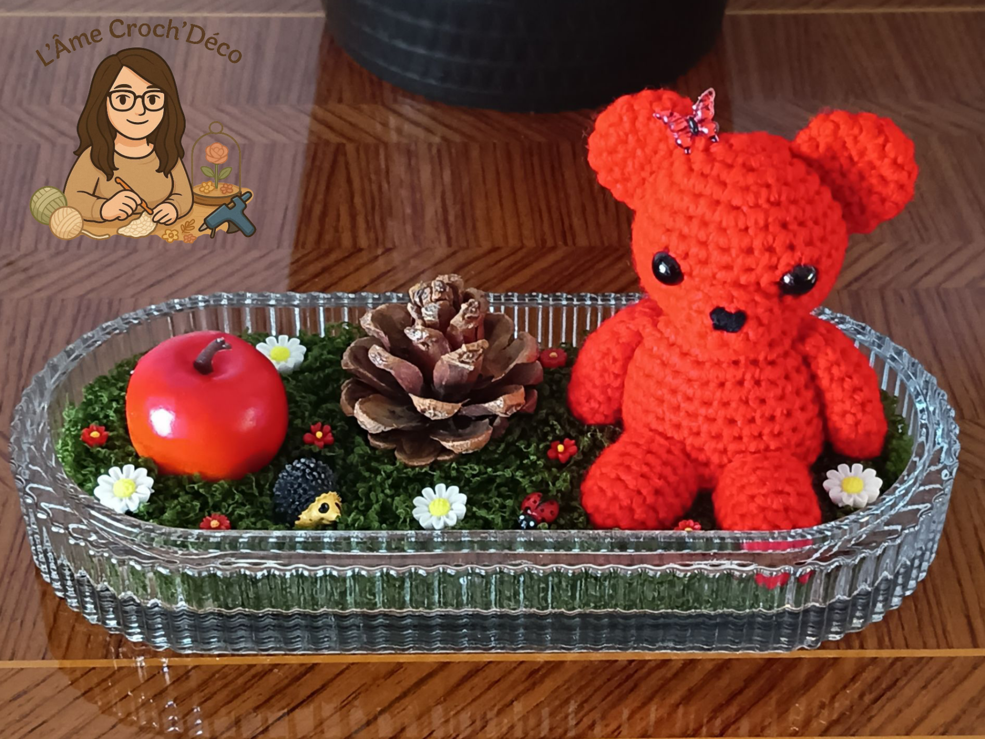 DÉCORATION AUTOMNALE AVEC OURSON CROCHETÉ ROUGE