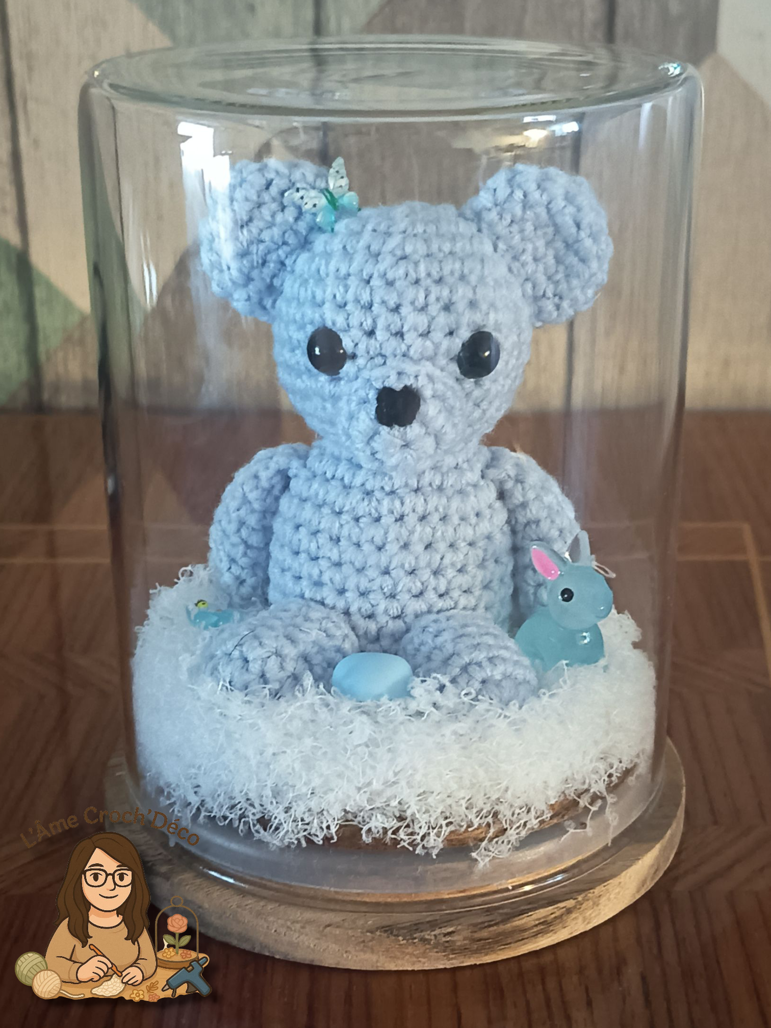 OURSON CROCHETÉ BLEU CIEL SOUS BOCAL