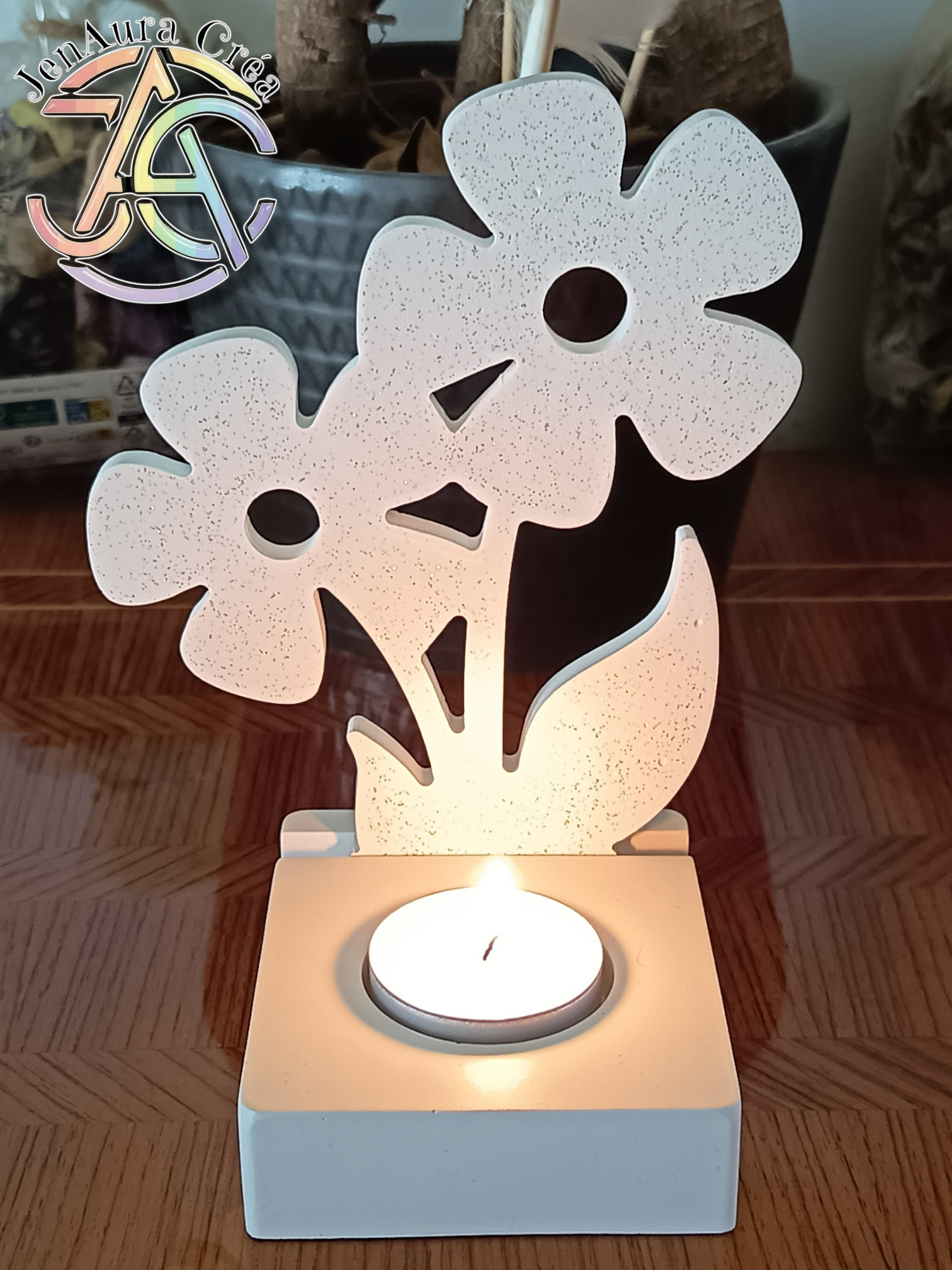 PORTE BOUGIE FLEURS BLANC/DORÉ